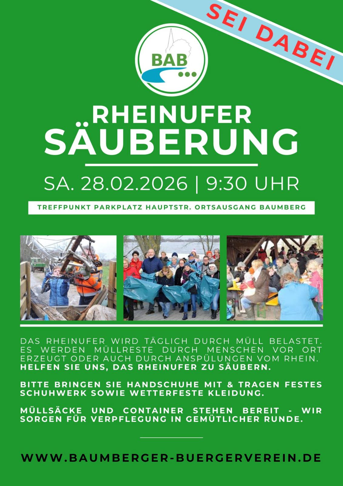 Müllsäcke werden gestellt. Bitte bringen Sie festes Schuhwerk und Handschuhe mit.